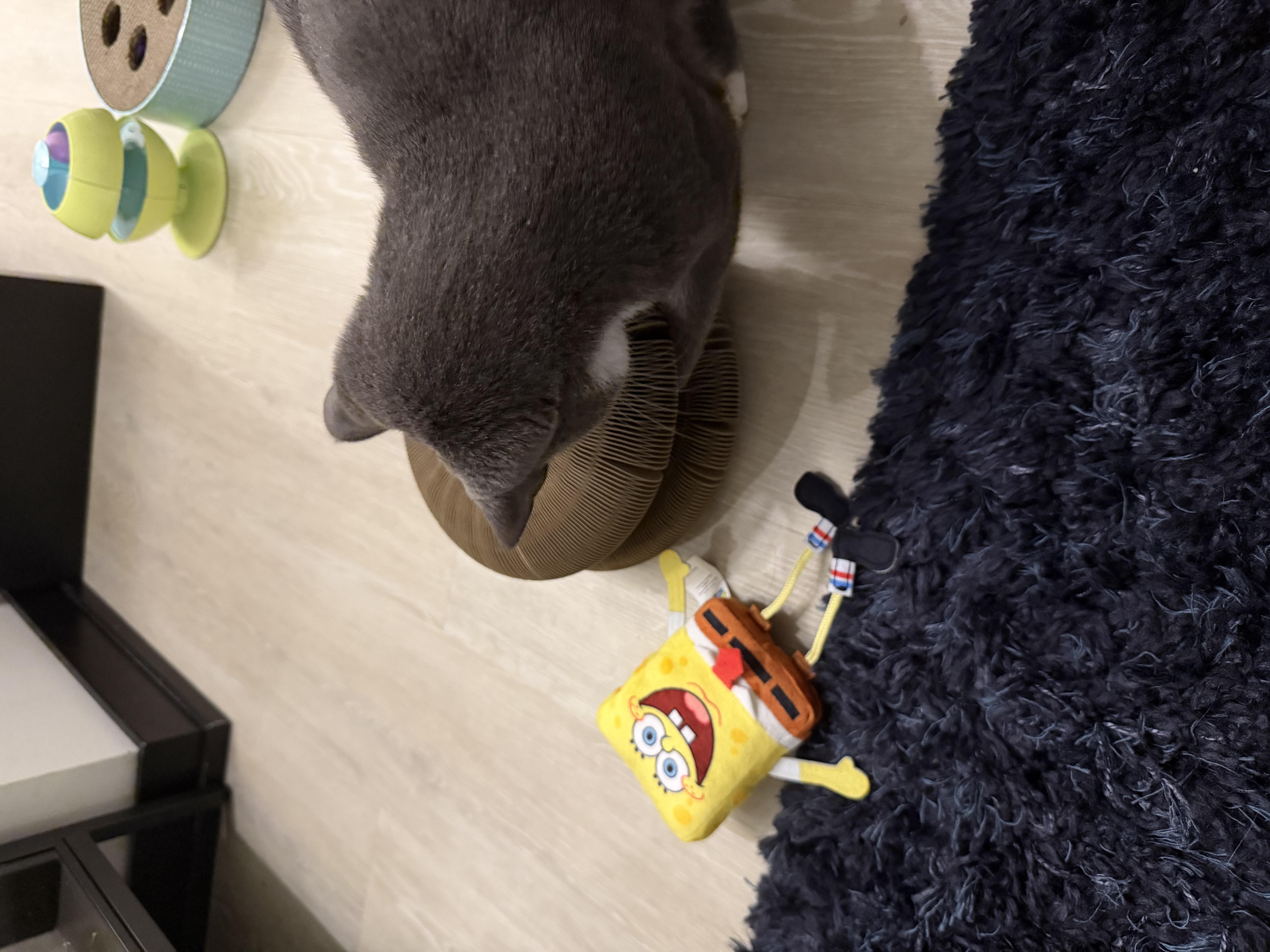 today i got some new toys. i got a cool puzzle scratchy expandy thing and spongebob!